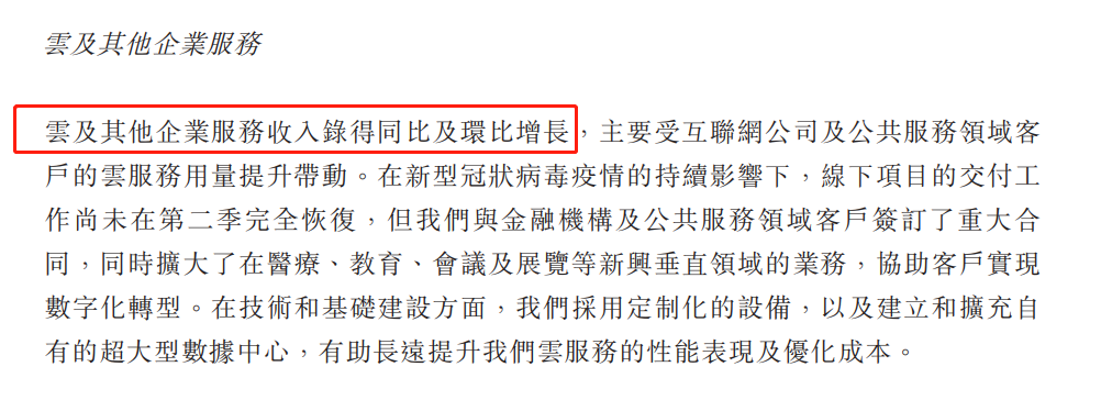 此次財報中,未披露“云及其他企業服務”的細節,只是定性為“環比和同比都穩步增長”;但是可以預見,隨著中國經濟結構轉型與產業結構升級的大背景下,政務、商務、工業、金融等領域“上云”的需求將持續增加,云業務終將成為騰訊業務爆發的下一個環節。